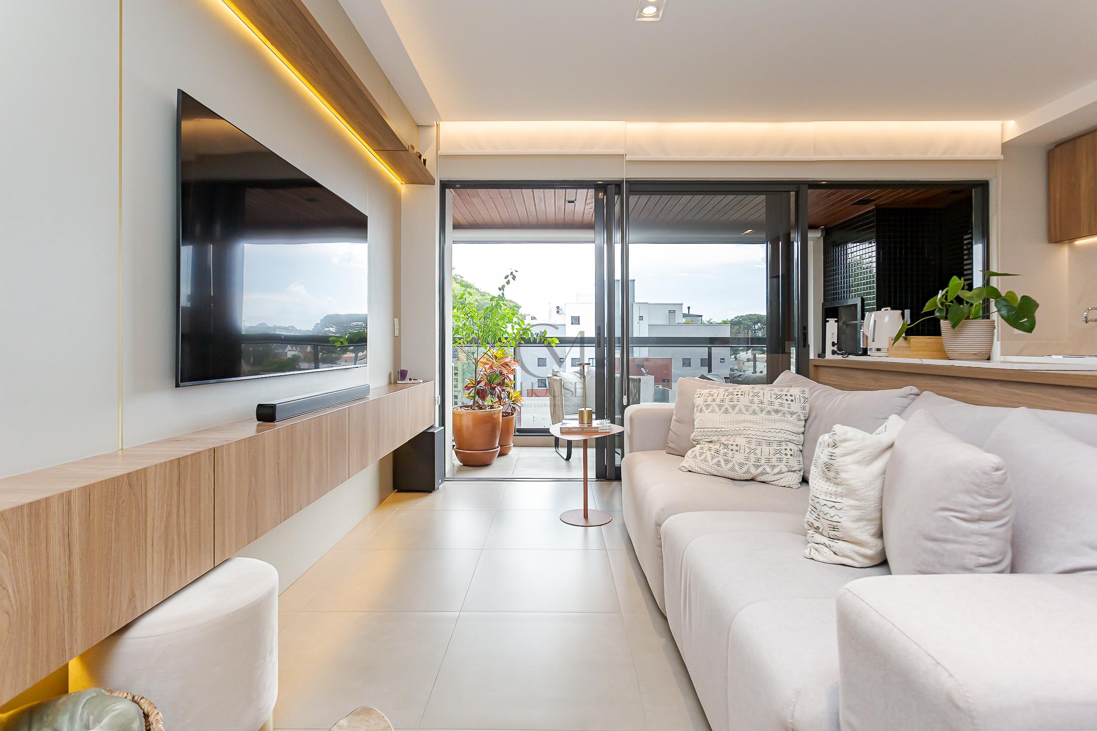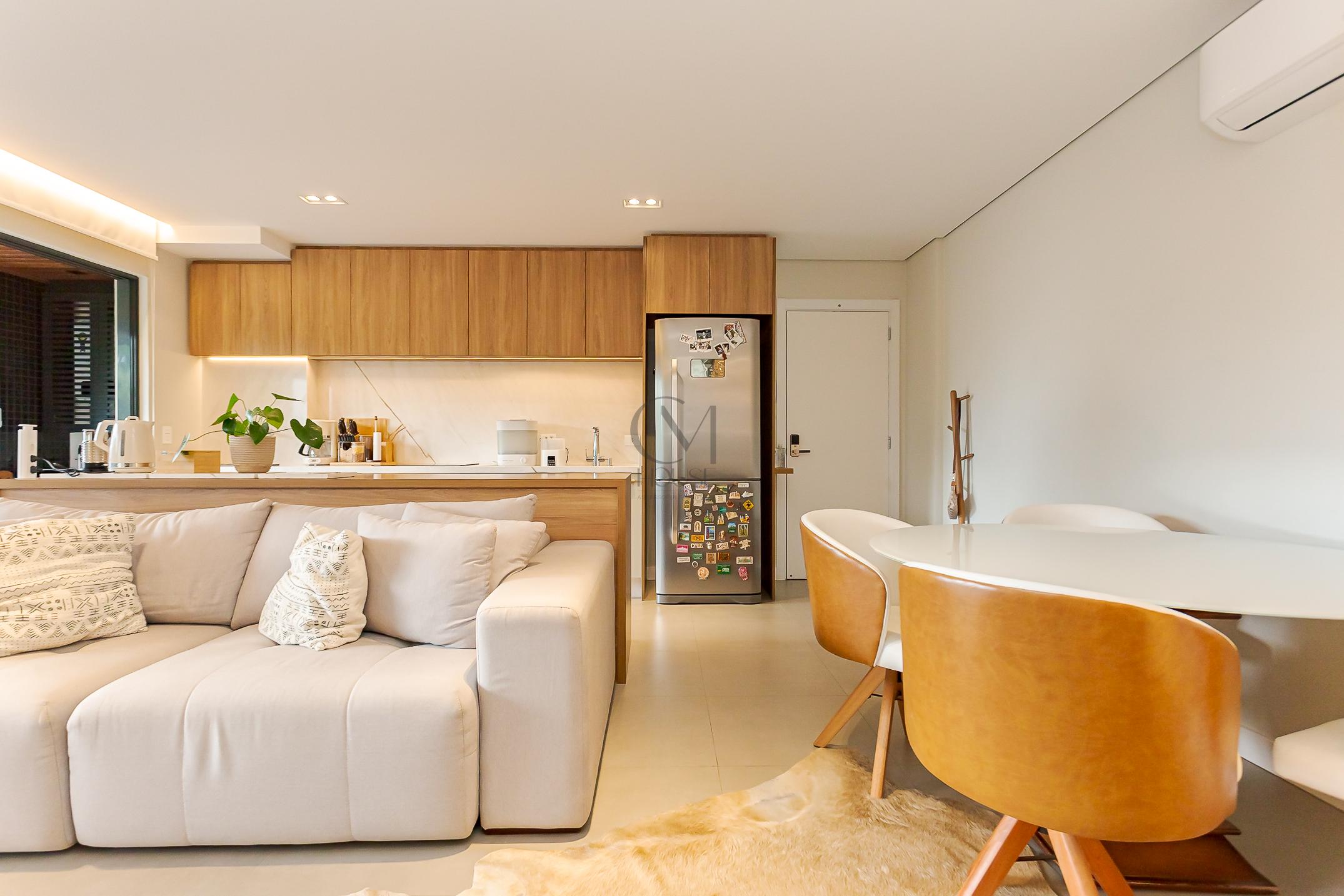São 74,89 m² privativos, com sala de estar e jantar climatizadas, integradas à cozinha em conceito aberto, proporcionando conforto e funcionalidade.