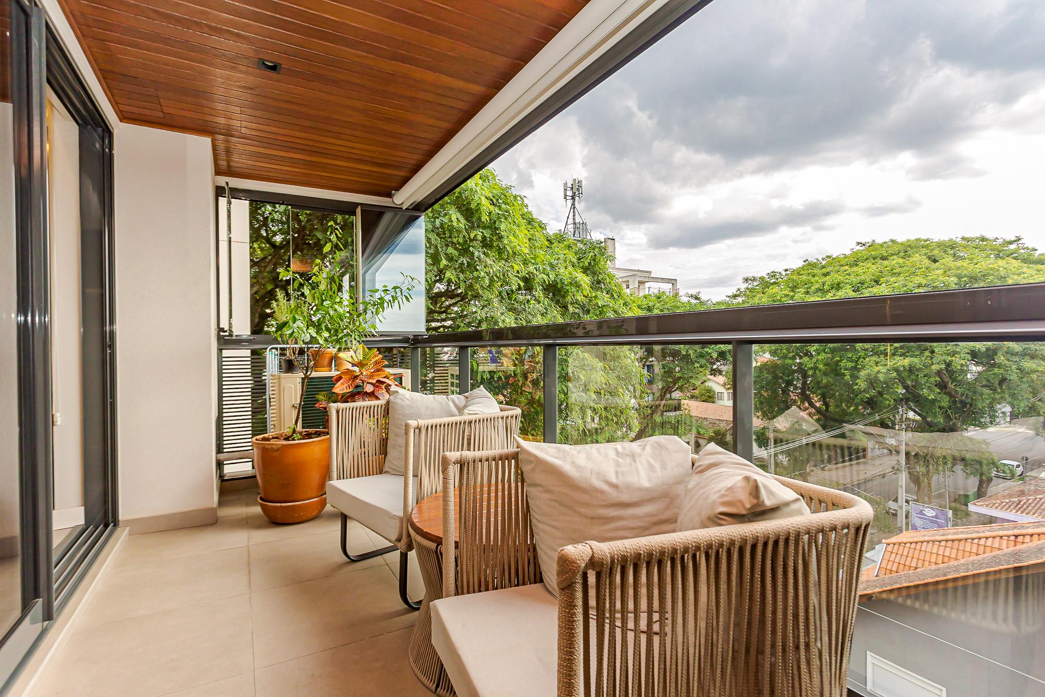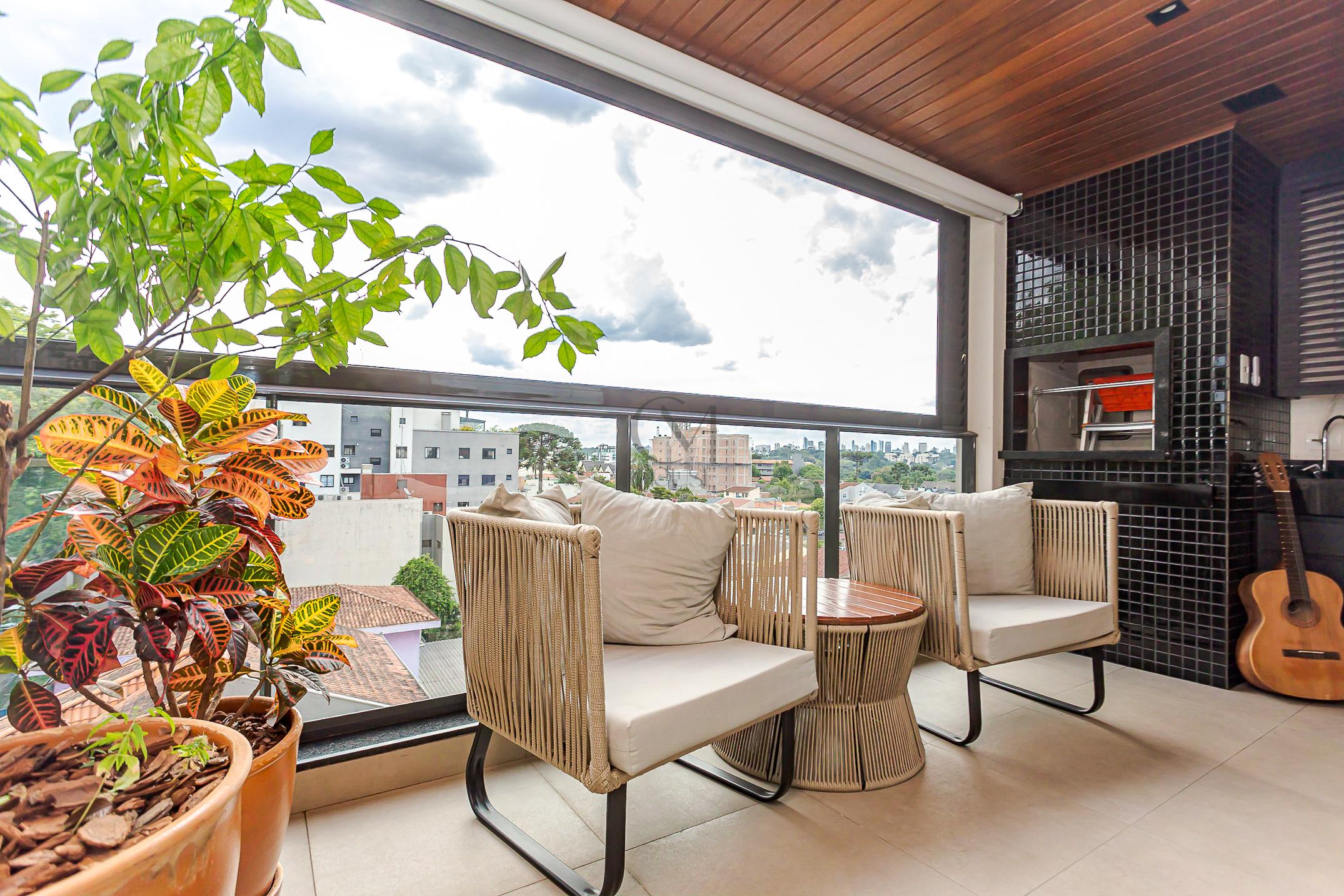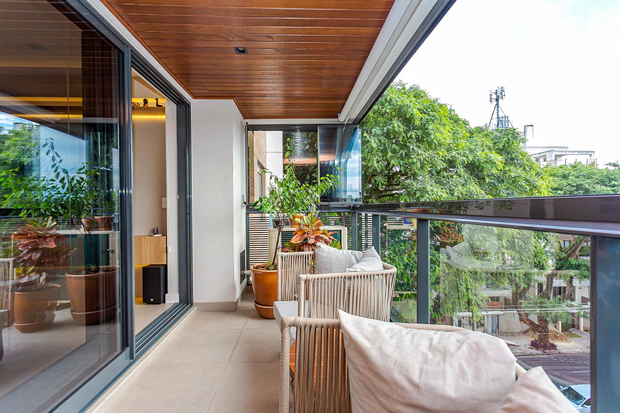 A ampla sacada, com fechamento em reiki, churrasqueira a carvão e vista para o pôr do sol, é um convite para bons momentos.