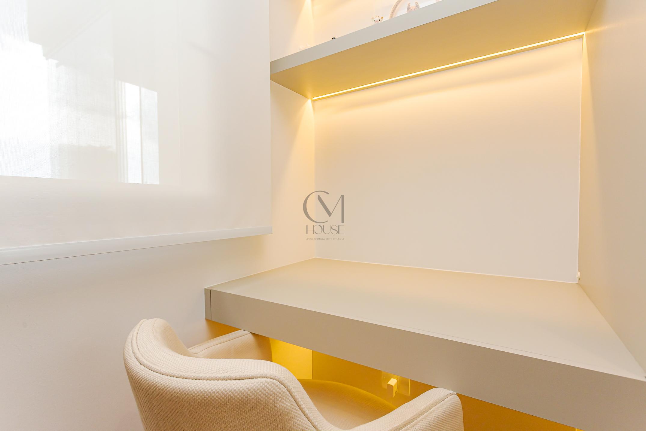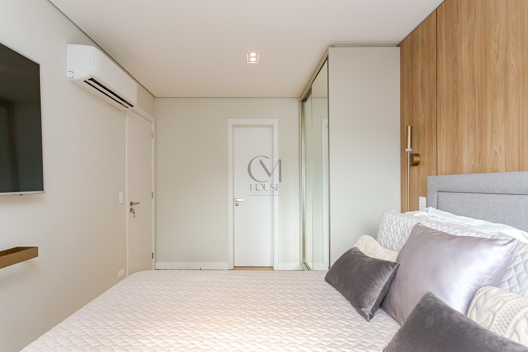 A suíte conta com móveis planejados, ampla janela com esquadrias de alta performance, banheiro com ventilação natural e aquecedor de toalhas.